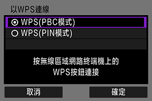 在[選擇網路]畫面上選擇[以WPS連線]。