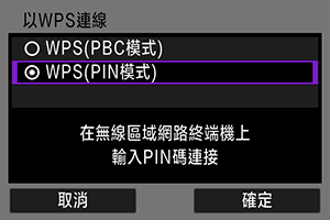 - 如果附近啟用了多個存取點,則可能難以進行連接。如出現此情況,請嘗試使用[WPS(PIN模式)]進行連接。