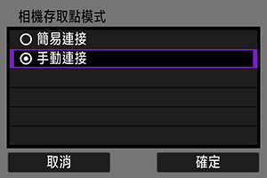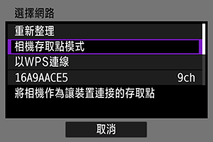 在[選擇網路]畫面上選擇[相機存取點模式]。