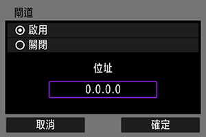 要使用閘道,請選擇[啟用],然後選擇[位址]。