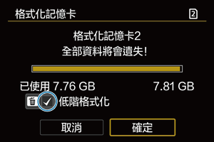 - 如記憶卡的寫入或讀取速度減慢,或希望完全刪除記憶卡中的資料,請執行低階格式化。