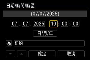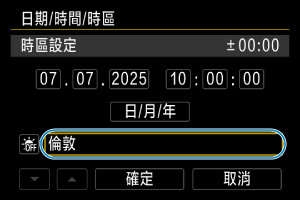 • 輸入時區或時差後,轉動速控轉盤1轉盤選擇[確定],然後按下SET