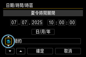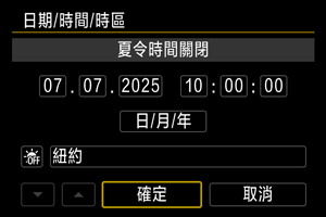 • 夏令時間設為[夏令時間]後,步驟3中設定的時間會前進1小時。如設為[夏令時間關],將取消夏令時間,時間將推後1小時。