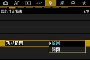設定拍攝模式或使用速控時,可顯示功能和項目的簡要說明。