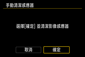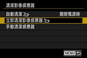 - 即使重複清潔影像感應器,效果亦不會有太大改善。請注意,清潔後可能無法立即使用[立即清潔影像感應器