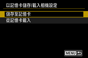 以記憶卡儲存/載入相機設定
