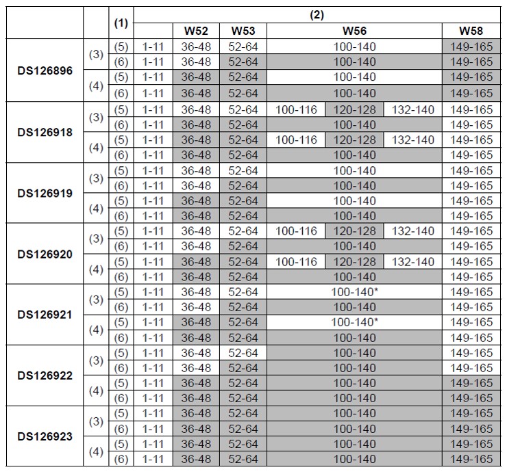 - 雖然可以使用其他頻道,但某些頻道會受到一些限制,請參閱註釋。