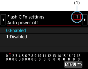 - Select [Flash C.Fn settings] or [External flash C.Fn setting].