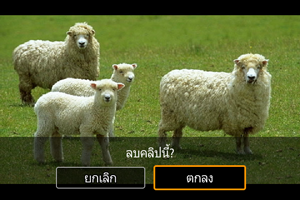 สามารถลบภาพแต่ละตอน (คลิป) ที่บันทึกในโหมด โปรดระมัดระวังขณะลบคลิป เพราะคุณจะไม่สามารถกู้คืนข้อมูลที่ลบกลับมาได้
