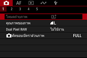 หน้าจอเมนูการถ่ายภาพพื้นฐาน