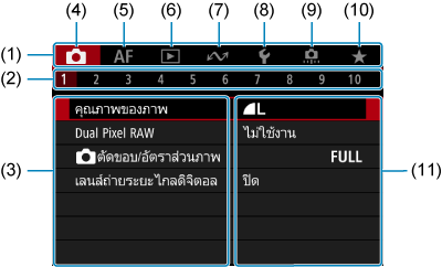 - หน้าจอเมนูการถ่ายภาพพื้นฐาน