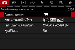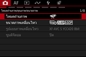 หน้าจอเมนูการถ่ายภาพพื้นฐาน