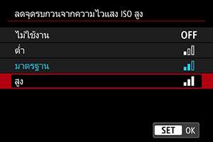 รายการเมนูที่มีสีจางไม่สามารถตั้งค่าได้ การตั้งค่าฟังก์ชั่นอื่นได้ครอบคลุมรายการเมนูที่มีสีจางนี้แล้ว