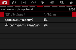 คุณสามารถดูฟังก์ชั่นที่มีผลเหนือกว่าได้โดยเลือกรายการเมนูที่มีสีจางและกดปุ่ม