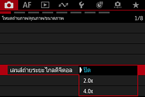 - กำลังขยายในการถ่ายภาพจะไม่ถูกปรับเมื่อเลือก [ปิด]