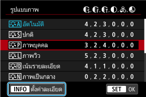 - เลือกรูปแบบภาพที่จะปรับ จากนั้นกดปุ่ม INFO
