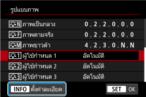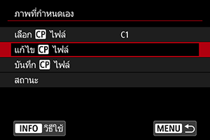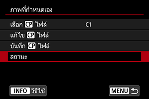 คุณสามารถตรวจสอบการตั้งค่าไฟล์ภาพที่กำหนดเองจากเมนู [ภาพที่กำหนดเอง]