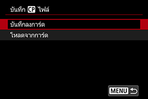 สามารถบันทึกไฟล์ภาพที่กำหนดเองที่แก้ไขแล้วลงในการ์ดและใช้กับกล้องตัวอื่นในรุ่นเดียวกันได้