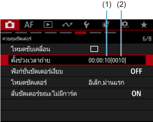 การตั้งค่าช่วงเวลาถ่ายจะแสดงบนหน้าจอเมนู
