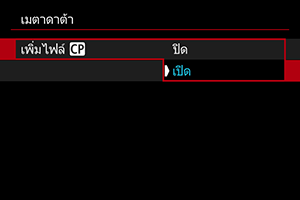 สามารถฝังไฟล์ภาพที่กำหนดเองในไฟล์ภาพเคลื่อนไหวโดยตั้งค่า [เพิ่มไฟล์ ] เป็น [เปิด] เมื่อตั้งค่า [