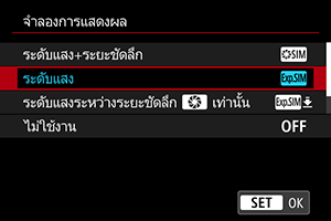 ด้วยการจำลองการแสดงผล การแสดงความสว่างและระยะชัดลึกของภาพจะใกล้เคียงกับความสว่างจริง (ระดับแสง) ของภาพที่คุณถ่ายมากขึ้น