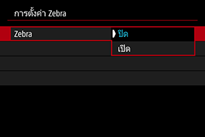 - แนะนำให้ตรวจสอบระดับการแสดง Zebra ล่วงหน้าเมื่อคุณจะตั้งค่า [รูปแบบ Zebra]