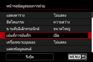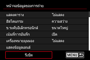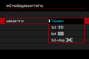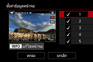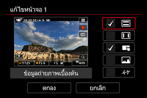 เพื่อเลือกหน้าจอข้อมูลที่จะแสดงบนกล้อง