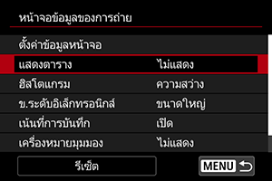 เลือก [ตั้งค่าข้อมูลหน้าจอ]