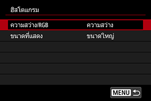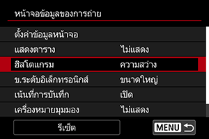 คุณสามารถเลือกเนื้อหาและขนาดจอภาพของฮิสโตแกรม