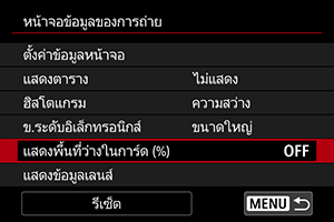 - การแสดงพื้นที่ว่างของการ์ด (%)