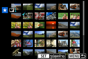 ในขณะที่ดูภาพในการแสดงภาพแบบดัชนี คุณจะสามารถระบุภาพแรกและภาพสุดท้ายในหนึ่งช่วงภาพ เพื่อให้คะแนนภาพทั้งหมดในครั้งเดียว