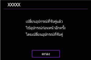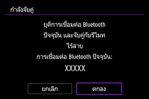 - จะมีข้อความแสดงขึ้นหากกล้องจับคู่กับอุปกรณ์อื่นอยู่แล้ว เลือก [ตกลง] เพื่อสิ้นสุดการเชื่อมต่อ Bluetooth ปัจจุบัน