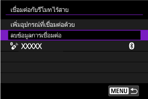 คุณสามารถลบข้อมูลการเชื่อมต่อได้ ข้อมูลการจับคู่สำหรับอุปกรณ์ BR-E1 ที่เชื่อมต่อใดๆ จะถูกลบออก