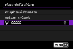 เมื่อจับคู่ผ่าน Bluetooth กับอุปกรณ์อื่น กล้องสามารถใช้ข้อมูลการเชื่อมต่อเพื่อเชื่อมต่ออีกครั้ง