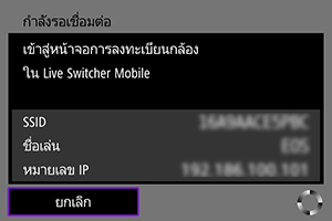 - หน้าจอนี้จะไม่แสดงขึ้นหากเชื่อมต่อกล้องกับสมาร์ทโฟนเรียบร้อยแล้ว