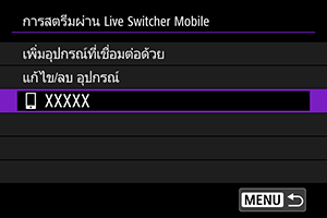 - ใน Live Switcher Mobile ให้เลือกกล้องสำหรับการเชื่อมต่อ