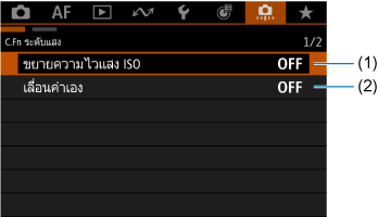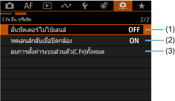 การเลือก [: ลบการตั้งค่าระบบส่วนตัว(C.Fn)ทั้งหมด] จะลบการตั้งค่าระบบส่วนตัวทั้งหมด