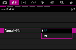 ตั้งค่า [โฟกัสอัตโนมัติ: โหมดโฟกัส] เป็น [AF]