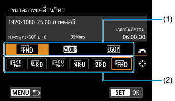 - คุณสามารถปรับแต่งรายการตั้งค่าบนหน้าจอที่แสดงด้านบนได้ใน [