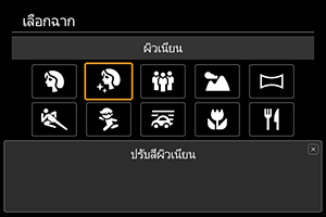 ใช้ [] (ผิวเนียน) เพื่อถ่ายภาพผิวให้ดูสวยงามมากขึ้น การประมวลผลภาพทำให้ผิวดูเรียบเนียนขึ้น