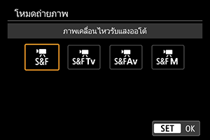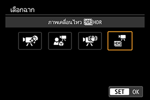 ให้เลือกโหมดการบันทึกหลังจากแตะไอคอนทางด้านซ้ายบนหรือเข้าถึงหน้าจอ [เลือกฉาก] หรือ [โหมดถ่ายภาพ] ใน [