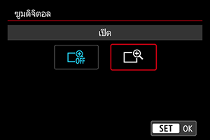 - ในการยกเลิกซูมดิจิตอล ให้เลือก [ปิด] ในขั้นตอนที่ 2
