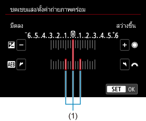 - คุณสามารถตั้งค่าถ่ายภาพคร่อมร่วมกับการชดเชยแสง ()