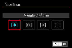 การวัดแสงรอบหน้าจอจะถูกเฉลี่ย โดยเน้นการวัดแสงกลางภาพเป็นหลัก
