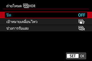 - สำหรับการถ่ายภาพปกติที่ไม่ใช่ HDR ให้เลือก [ปิด]
