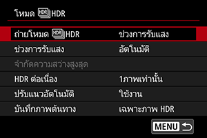 เมื่อใช้ [ทุกภาพ] การถ่ายภาพ HDR จะดำเนินต่อไปจนกว่าคุณจะตั้งค่า [ถ่ายโหมด