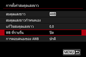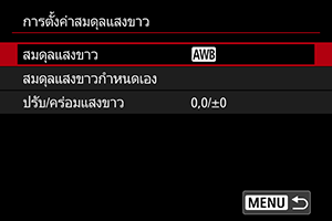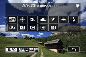 เลือกการตั้งค่าสมดุลแสงขาว