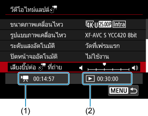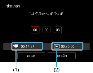 ระบุระยะเวลาในการบันทึกเคลื่อนไหว (เทียบเท่ากับระยะเวลาที่ต้องการสำหรับการเล่น)
