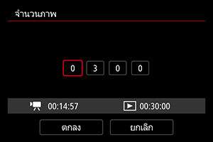 หมายถึงเวลาที่ต้องการในการถ่ายภาพตามจำนวนภาพและช่วงเวลาที่ตั้งค่าไว้ หากเกิน 24 ชั่วโมง จะแสดงเป็น “*** วัน”