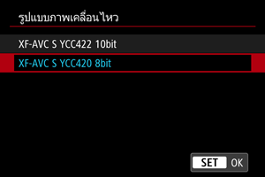 เลือกรูปแบบการบันทึกภาพเคลื่อนไหว